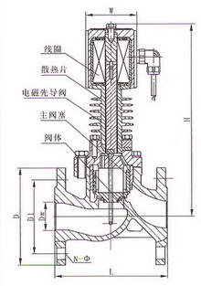 該電磁閥系電力操縱的常閉型先導式高溫電磁閥,適用于蒸汽管路中的自控制系統中。