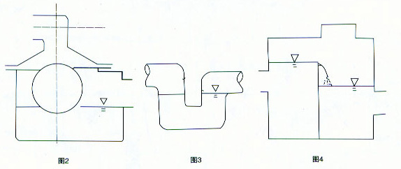 五、F43X雙封自凈式防逆水封閥安裝及作用說明 1、本閥一般安裝在清水池溢流管上,并徹窨井保護 2、本閥應按進出水管方向水平安裝,不得堅直或超過45℃傾斜安裝,以免影響閥門蓋板自動密封效果。 3、本閥前后均無需安裝檢修閥門,如需檢修,,可在清水池不溢流時進行。 4、本閥防雜物污染能力甚強,一般無需檢修,但需每隔兩至三年檢查一次閥芯是否動作靈活,有無雜物影響密封。 5、檢查時,只需打開閥頂部防護罩,用手拉動閥芯并自由放下即可。 六、F43X雙封自凈式防逆水封閥特別提示 1、本防逆封閥裝于清水池溢流管上,以前的防逆水封閥(圖2)及存水彎(圖3)或溢流井(圖4)在閥內無水時,均不能阻隔臭氣進入清水池,而當清水池進口浮球鞋閥很好時,尤其是新建水池,往往很少溢流甚至數年無溢流,因而,上述三種裝置均不能防止下水道臭氣進入清水池,而本防逆水封閥的蓋板浮球結構則可無論是否有水均可阻隔臭氣,保持清水池良好的衛生狀況。