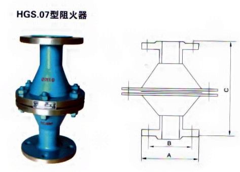 HGS.07型管道網(wǎng)型阻火器又名散熱放空型管道阻火器,適用于管道、儲存閃點低于28℃甲類、油品、氫氧液化類和閃點低于60℃。HGS.07管道網(wǎng)型阻火器是專用于加熱爐的燃料氣管道上。應(yīng)安裝在燃料氣進入噴嘴前的燃料氣管道上,以防止回火。 當(dāng)噴嘴回火時,阻火器內(nèi)金屬網(wǎng)由于器壁效應(yīng)轉(zhuǎn)化為熱能使火焰熄滅,防止因回火而引起燃料氣管道內(nèi)爆炸的危險。
